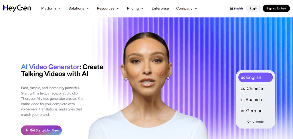 - Main Selling Point: HeyGen is a powerful and popular alternative known for its high-quality, realistic AI avatars and seamless lip-syncing. It’s an excellent choice for creating polished, professional-looking videos, especially for corporate communications and social media. HeyGen’s user-friendly interface makes it easy to get started, and its output quality is a major draw.