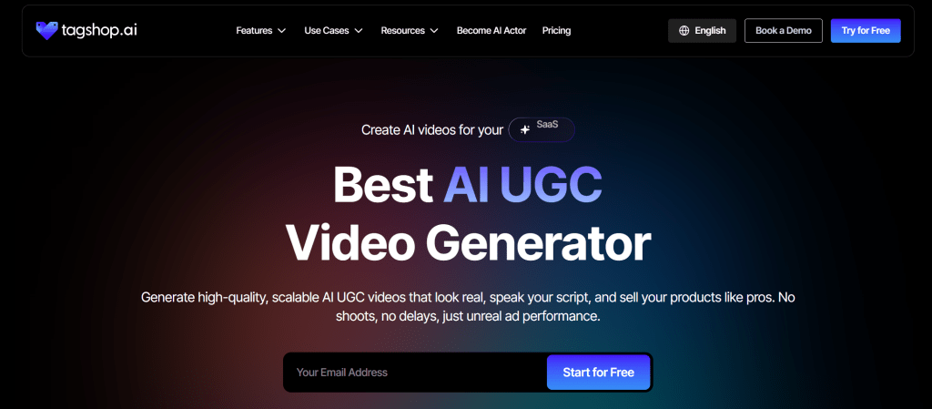 - Main Selling Point: Like Jogg AI, Tagshop AI is a purpose-built platform for creating high-converting UGC-style videos for e-commerce brands. It differentiates itself by creating a more authentic, less “perfect” look that resonates with online shoppers who value real, relatable content.